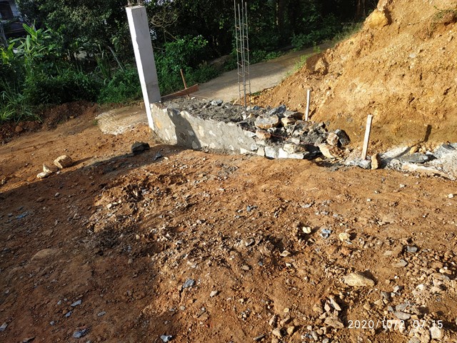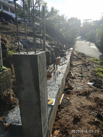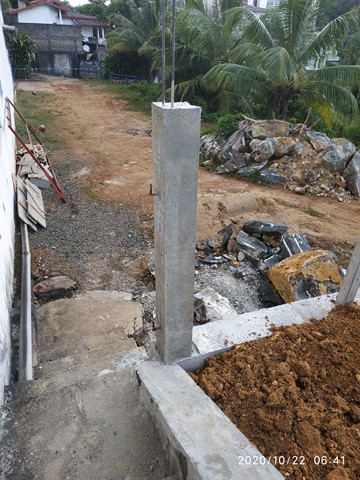 Angefangen hat man mit zwei Pfeilern an der Auffahrt. Dort wo der Kanister steht. |