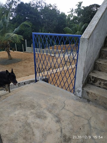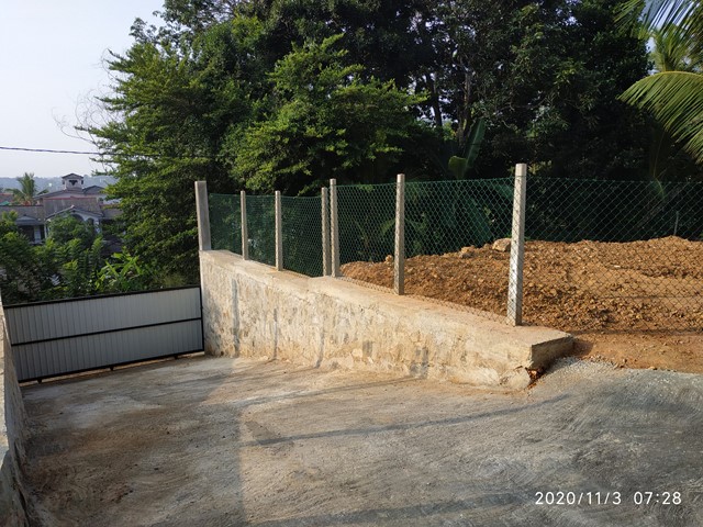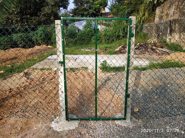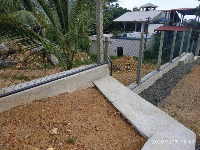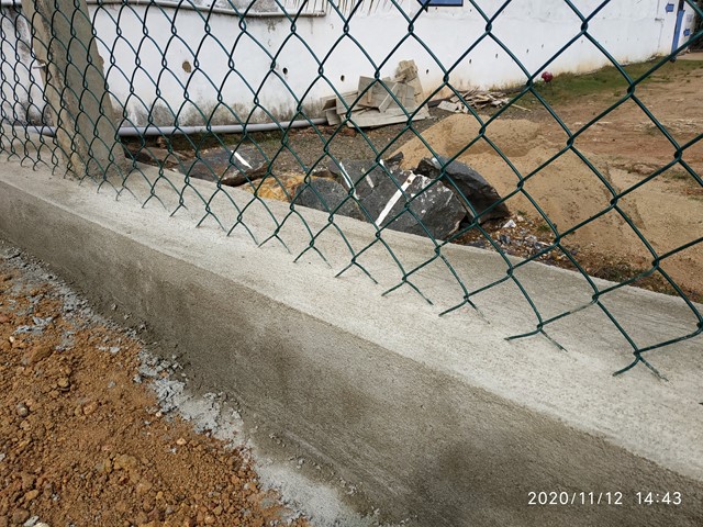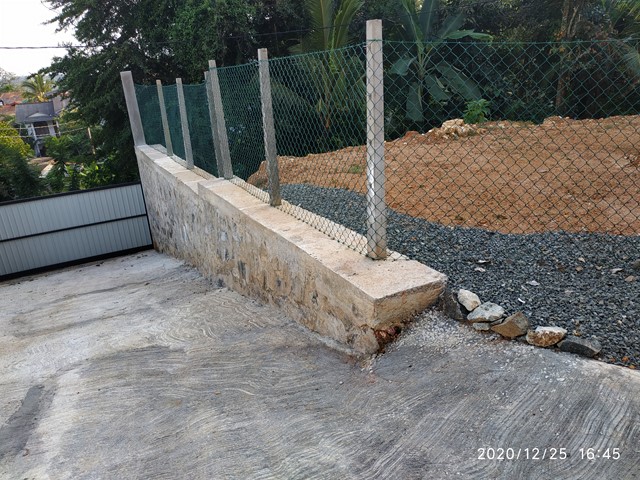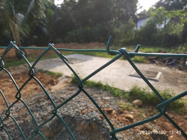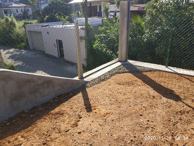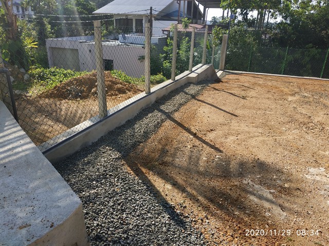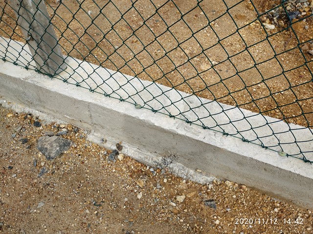 Hier geht es etwas Bergab. Wenn es regnet spuelt uns das den Sand durch den Zaun. |