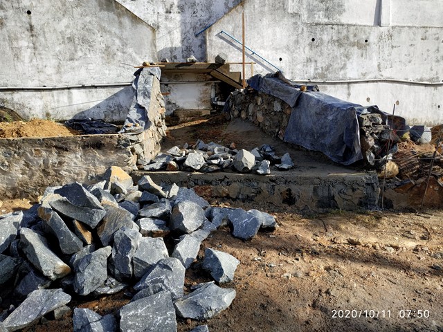 Erstmal Fundament giessen, bevor darauf die Steine gemauert werden. Es muss auch |