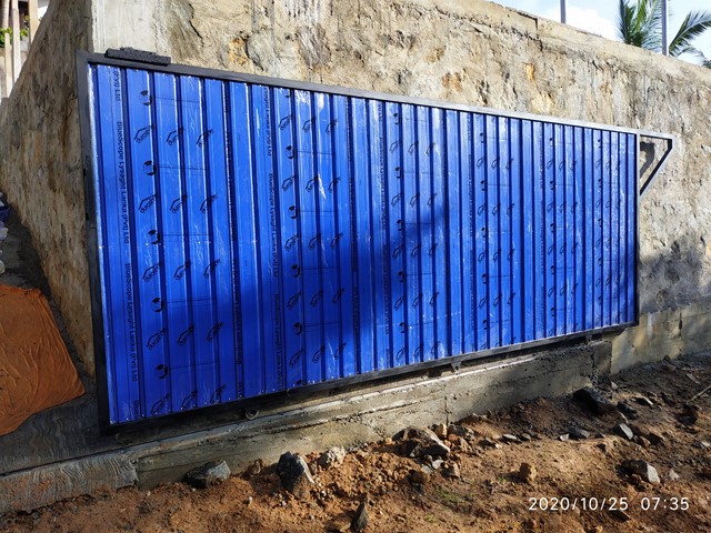 Das Rolltor wurde mit einem Abschlussblech versehen wegen der Kleintiere |