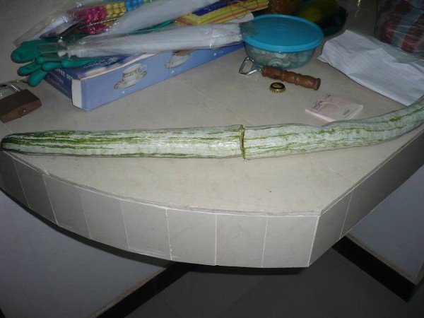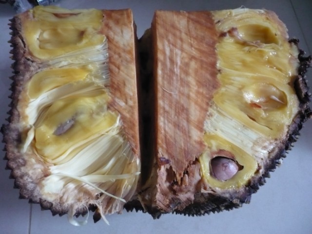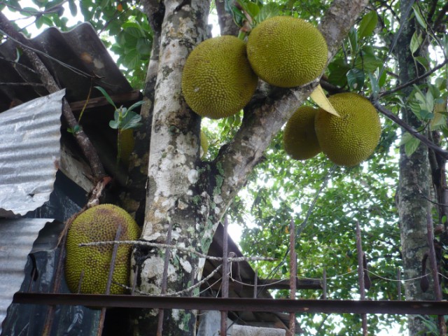 Jackfruit, so groß wie Melonen aber viel schwerer. Unreif gut zum kochen...