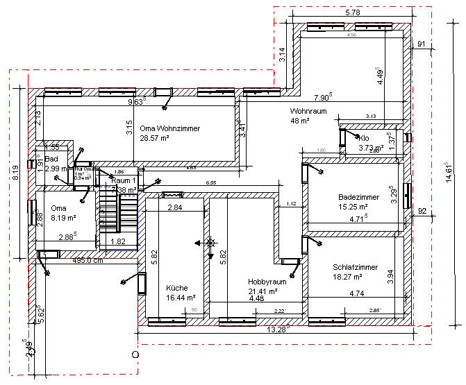 Hier wird noch richtig alles mit der Hand vermessen. Bandmaß +Lot heißt hier das Werkzeug.