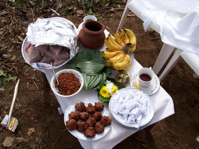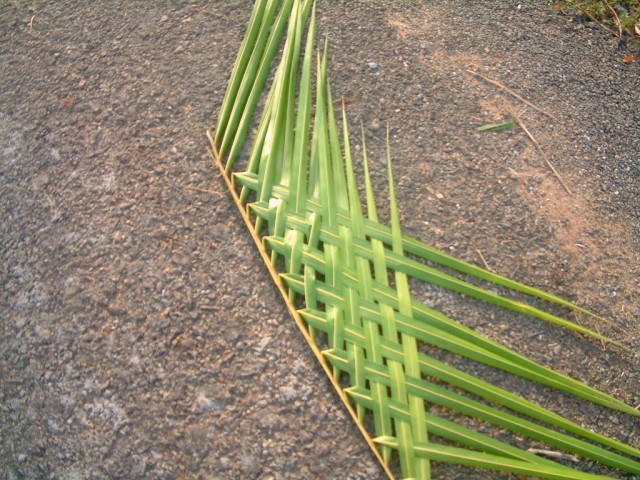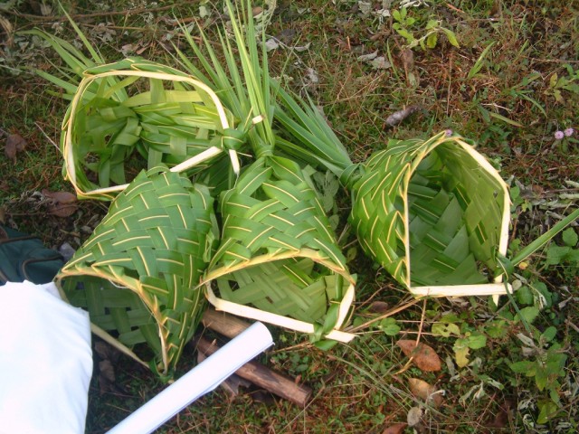 Es findet eine richtige Zeremonie über mehrere Stunden statt. Es werden aus Palmenblätter kleine Lampenschirme gebastelt, mit Teelichtern versehen und aufgestellt.