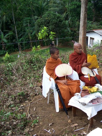 Wenn alles getan ist, bedankt man sich ordentlich bei den Mönchen für ihren Segen und anschließend wird gefrühstückt. Ein kleines Present bekamen sie auch noch. Die Mönche hält man sich mit kleinen Spenden bei Laune. Übrigens, der Tempel der Mönche ist gleich nebenan.