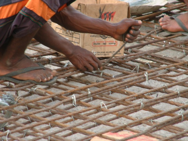 Hier noch einmal deutlich zu sehen. Alles Handarbeit. Wenn ich diese Haltung in Flip-Flop Latschen nur sehe, kriege ich schon Rücken. |