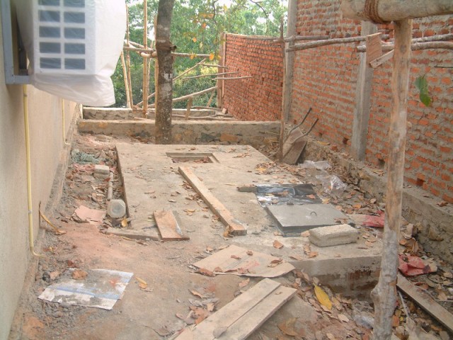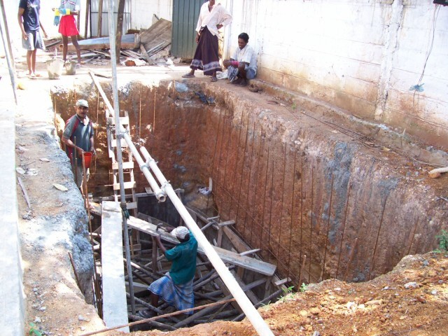Fußboden betoniert und anschließend die Wände. Hier arbeiten sie gerade an der Verschalung der Seiten. |