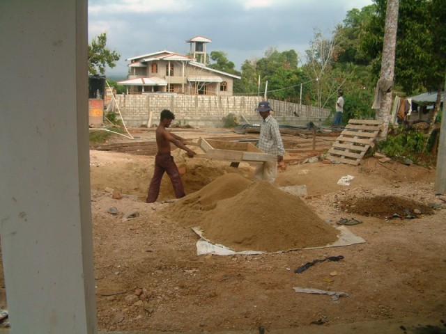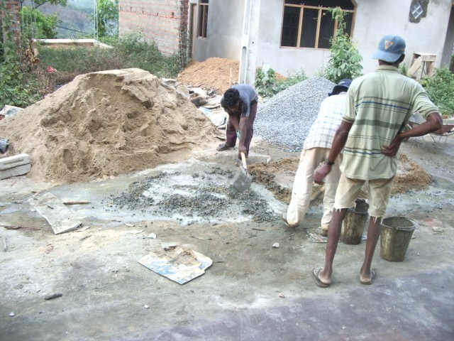... oder so wenn man zu zweit ist. Als Füllstoff kommen hier immer so kleine Steinchen hinein und natürlich ein Anteil an Zement und zu guter Letzt Wasser. |