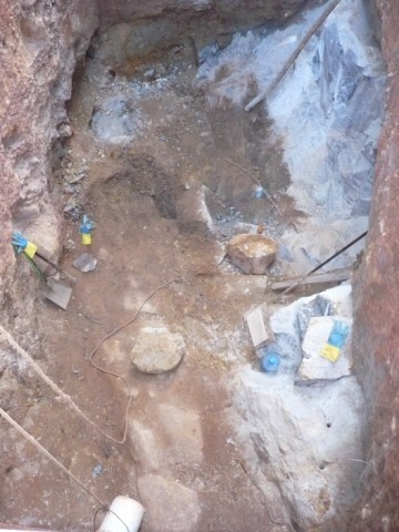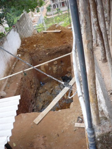 Jetzt brauchen wir eine Klärgrube fürs Haus. Da wir auf felsigem Untergrund bauen haben wir zwar eine solide Grundlage, aber auch immer wieder felsige Probleme.