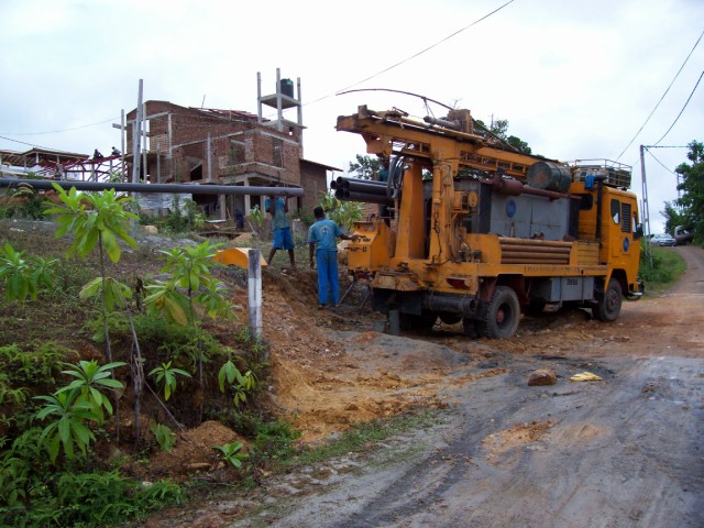 Die Firma, die das Wasser liefern wollte, hat sich da wohl etwas übernommen. In der Zwischenzeit hat sich das Volk beschwert und der Stadtrat hat ihnen recht gegeben. So werden jetzt zumindest die Straßen aufgerissen und Rohre verlegt. Na mal sehen wie das weiter geht. Wir haben jedenfalls Wasser und das nicht zu knapp. Wir haben nämlich einen Brunnen von 60 m Tiefe gebohrt.
