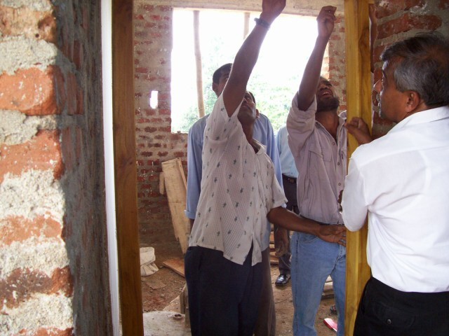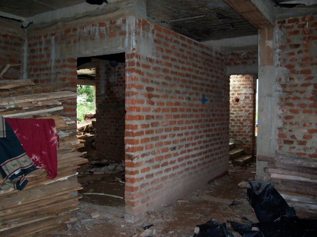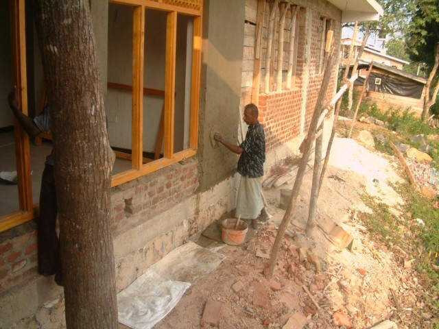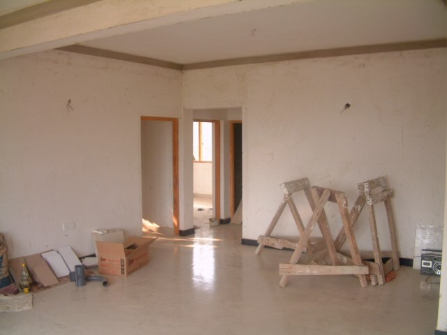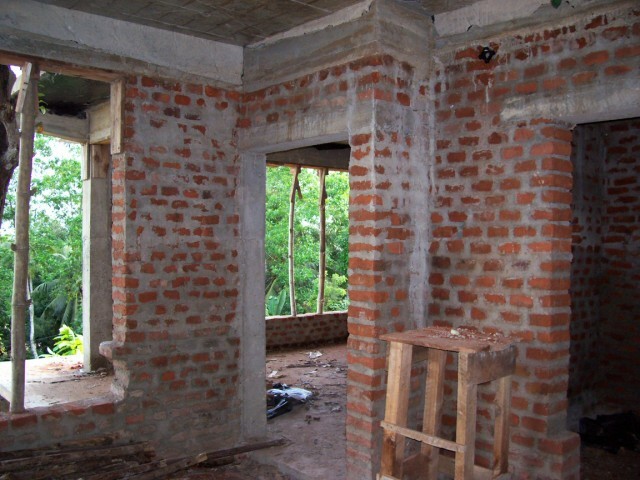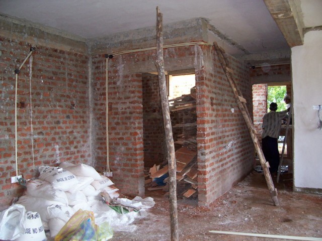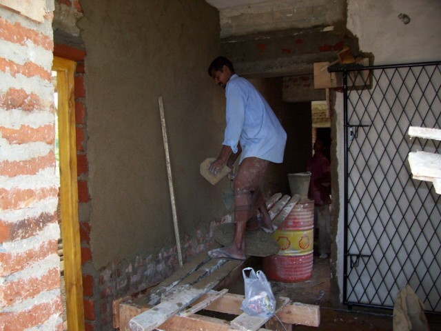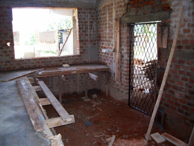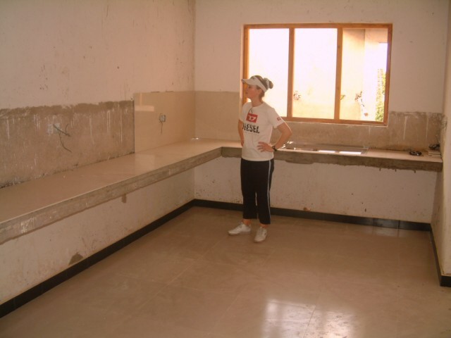 In der Küche wird eine Arbeitsplatte fest einzementiert. Leider zu niedrig. |
