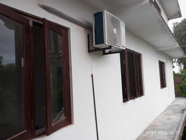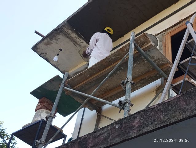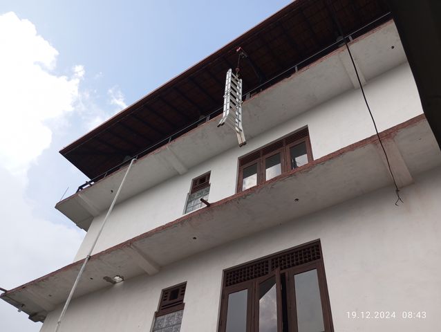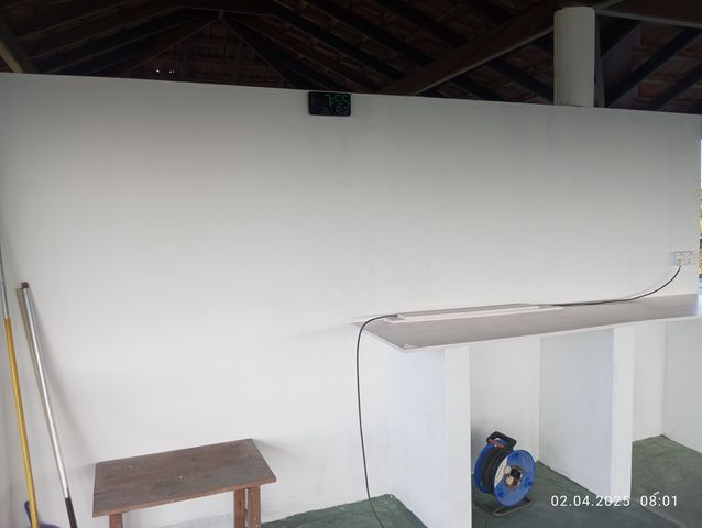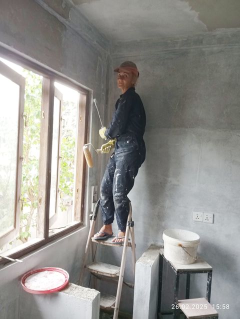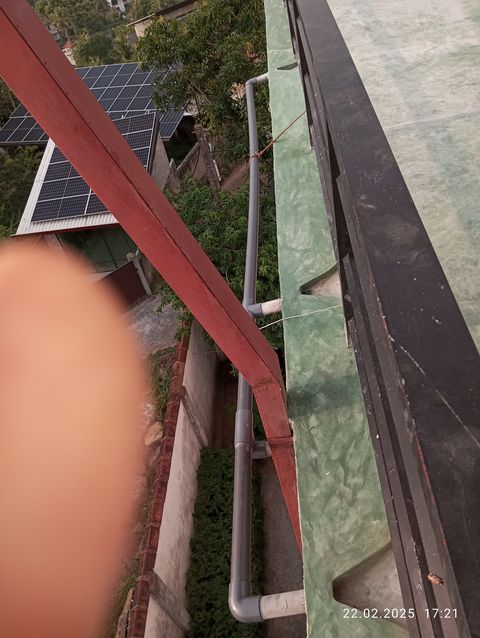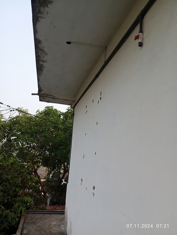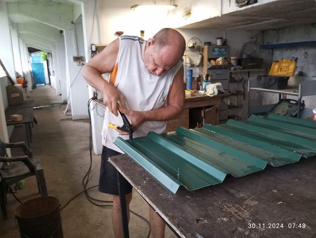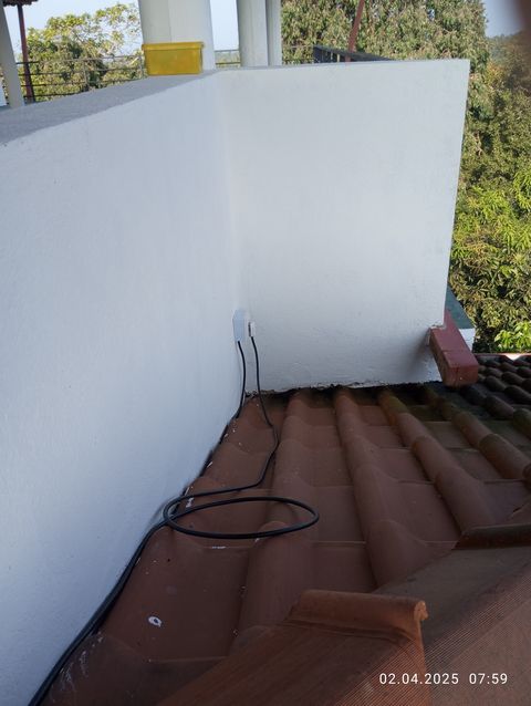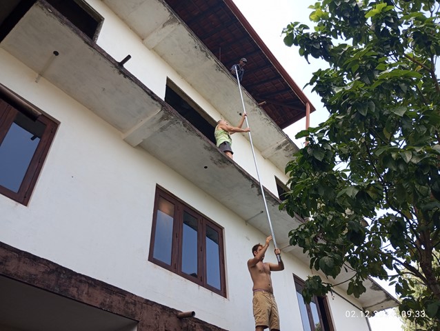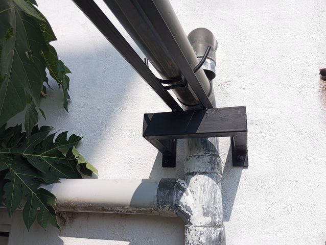 | Die Rueckseite vom Haus einschliesslich Ober- und Unterseite der Umlaeufe gestrichen. | Iggi installiert einen Kabelkanal fuer neue Stromleitungen fuer AP2 |