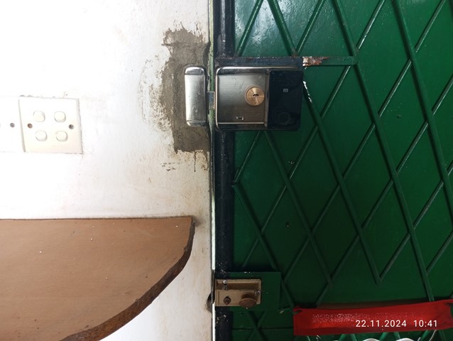 | Auch die Tuer zum Wartungsbereich ist nun einsatzfaehig. | Sogar ein Schloss mit Fingerabdruck. |
