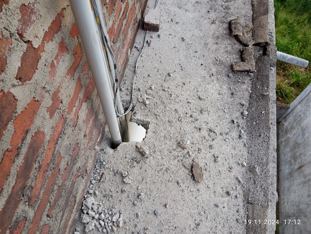 ein Schlitz in die Mauer gefraesst, in dem dann ein weiter