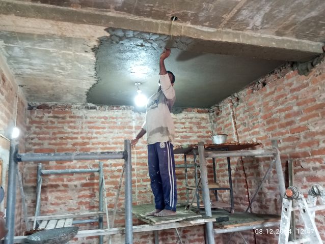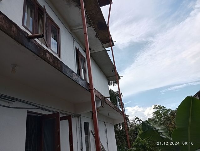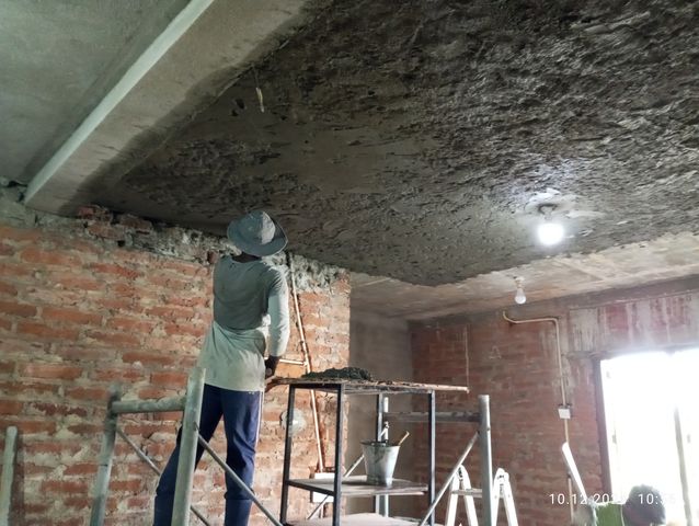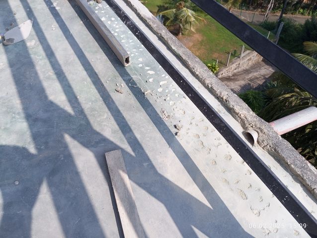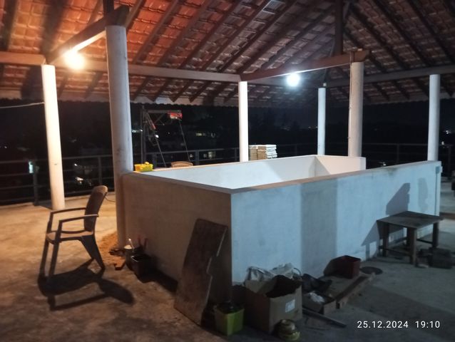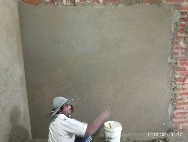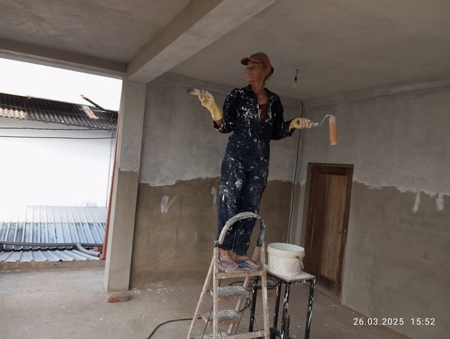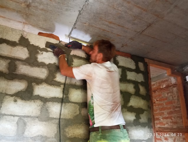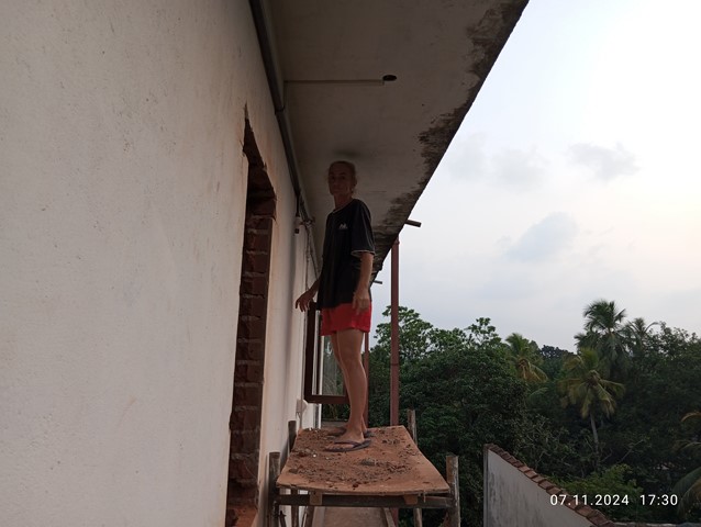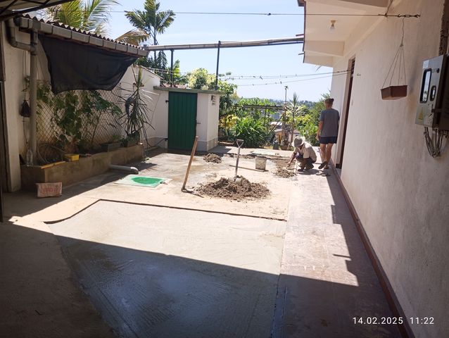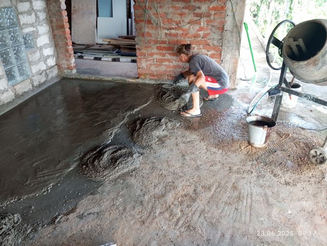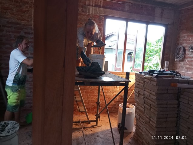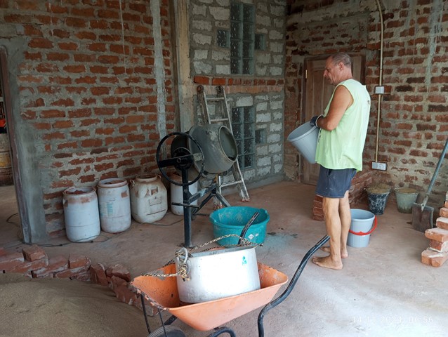 | Genug geruht, weiter gehts. Auch hier geht es um eine Wassersperre, damit das Regen- ... | ...wasser nicht ins Mauerwerk zieht, haben wir eine kleine Schraege zementiert. Video 44 |