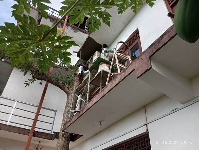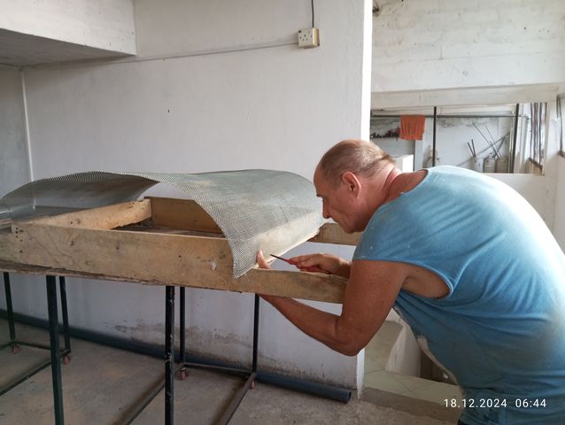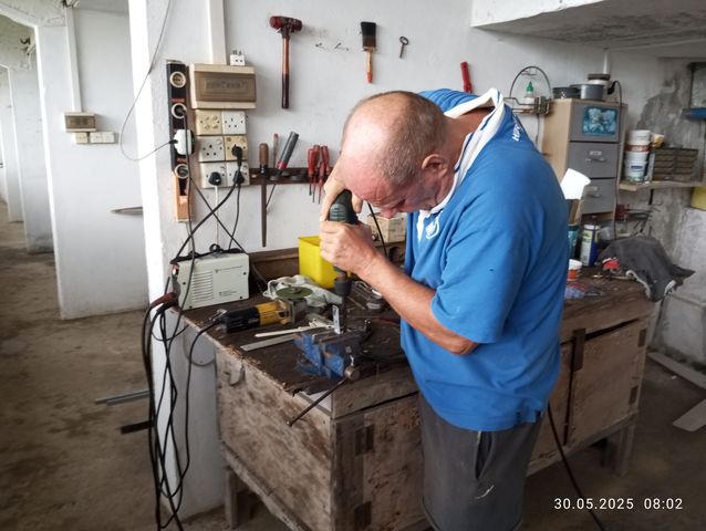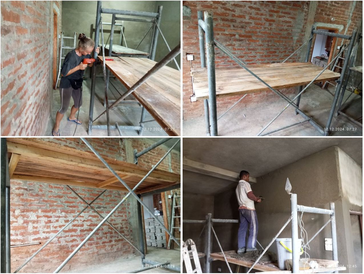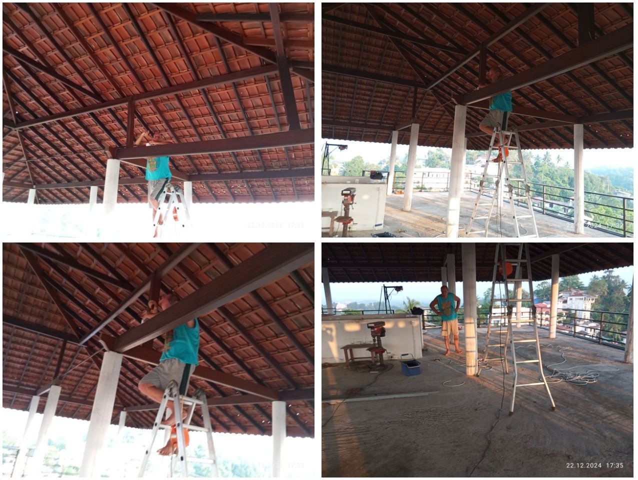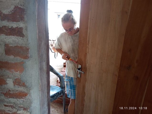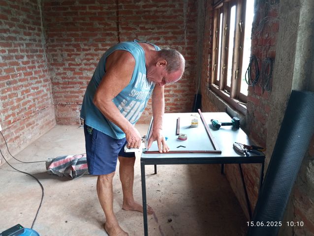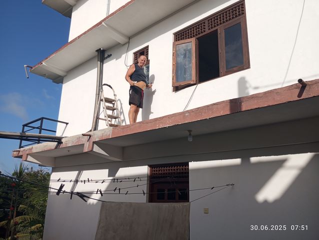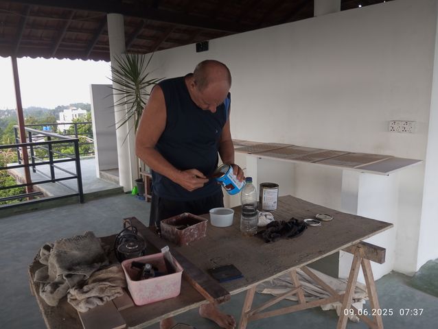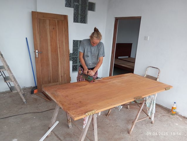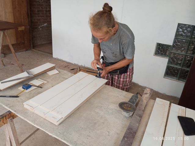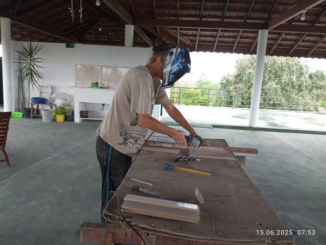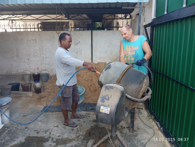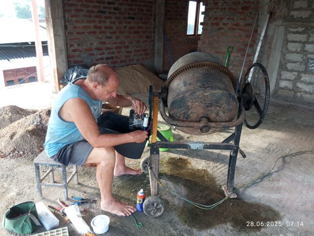 | Arbei, Arbei, Arbei (das T fehlt mit Absicht, ist ein Insider) Anfertigung eines Moskitonetzes. | Voller Tatendrang wollten wir after long time zementieren - Kondensator kaputt. |