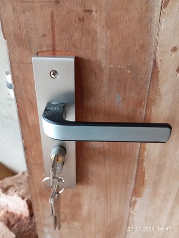 Grundplatte fuer das zukuenftige Tuerschloss wird
