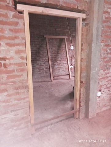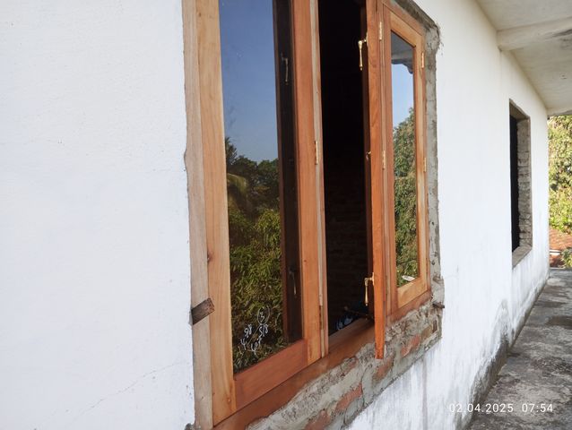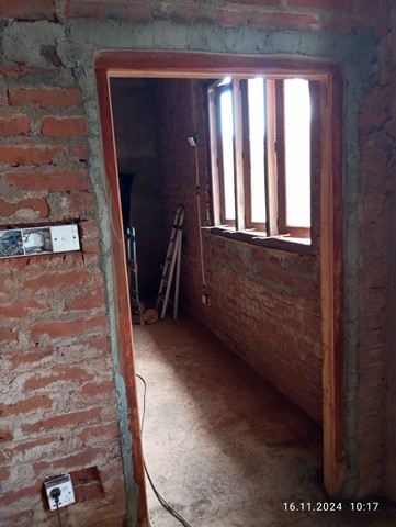 Hintergrund sieht man den eingesetzten Fensterahmen. Links der
