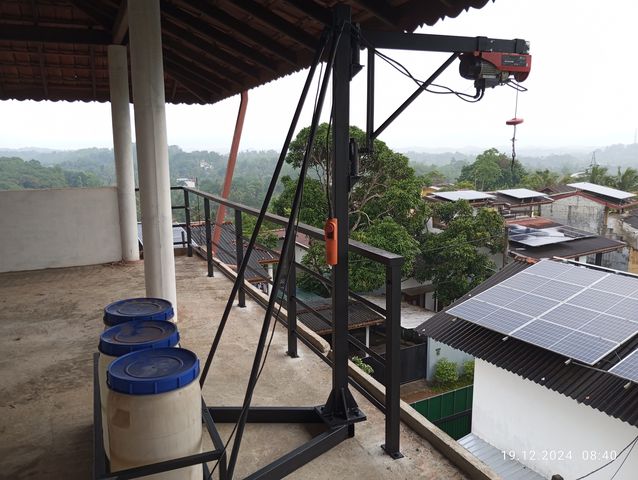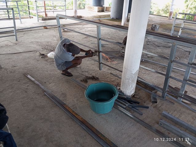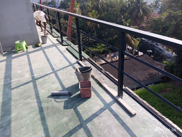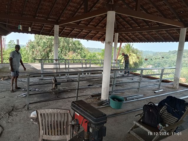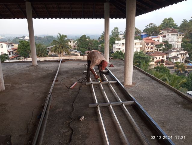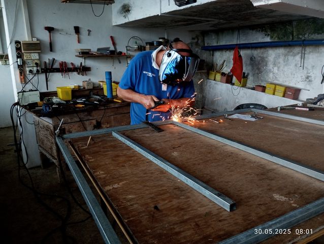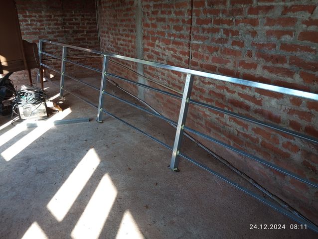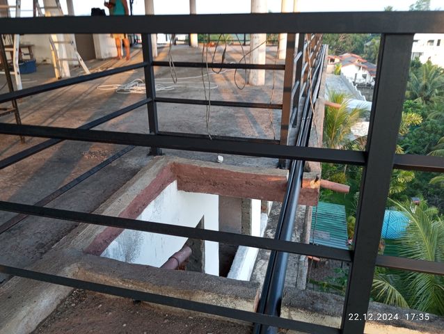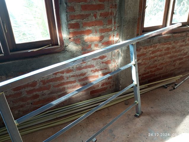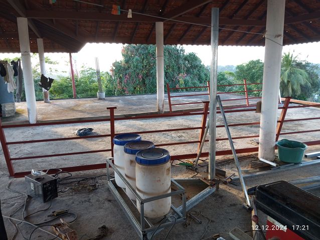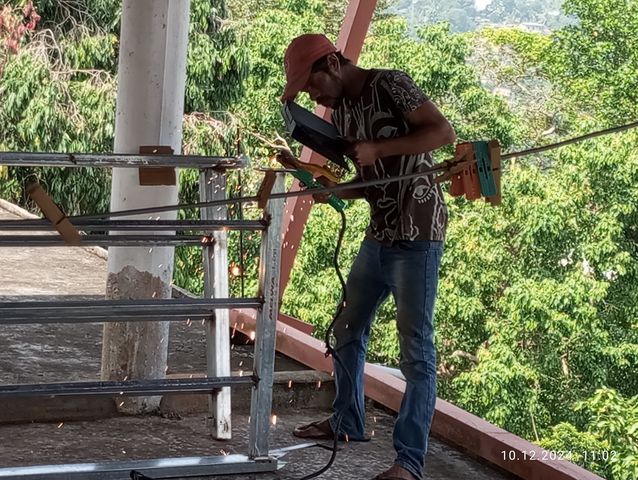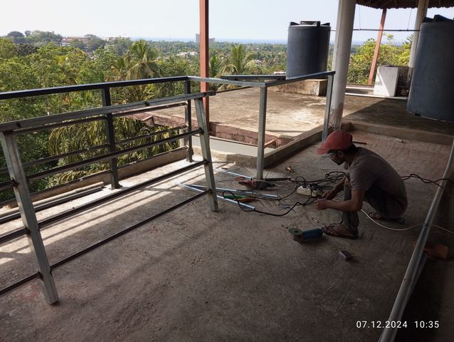 wir Material zum schweissen des Gelaenders auf die Dachterrasse