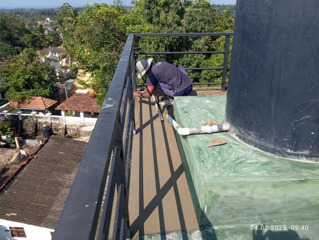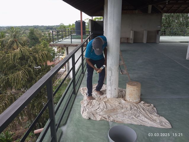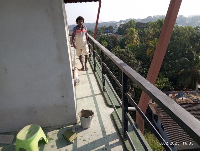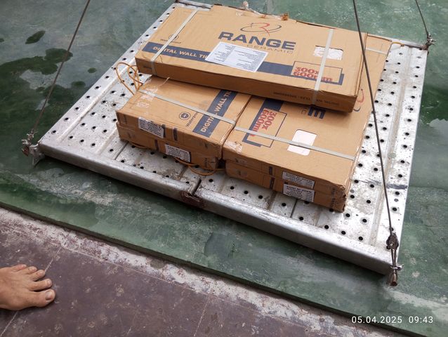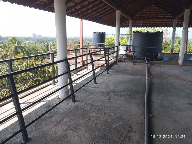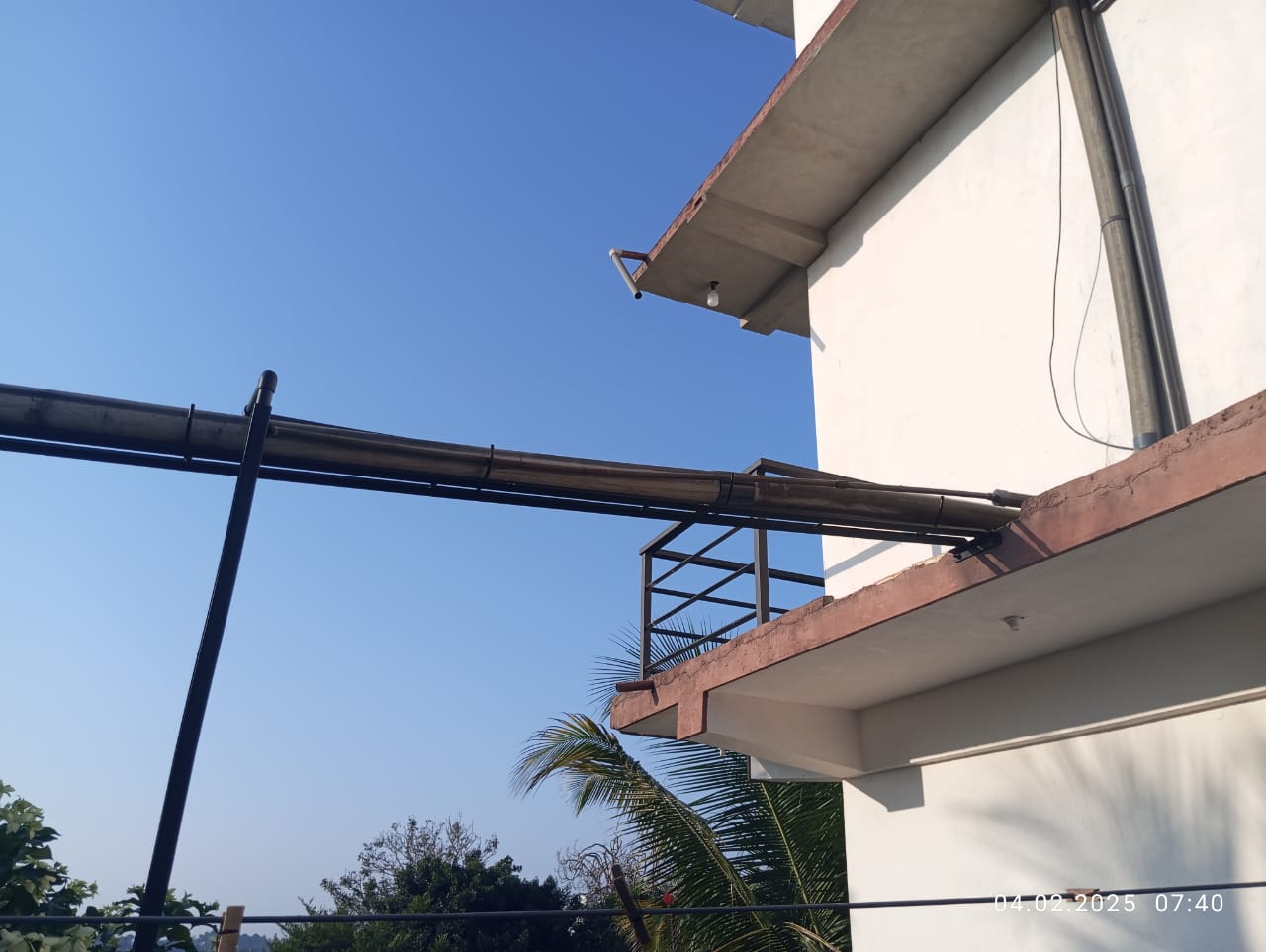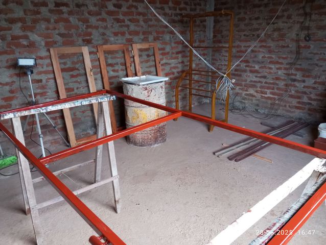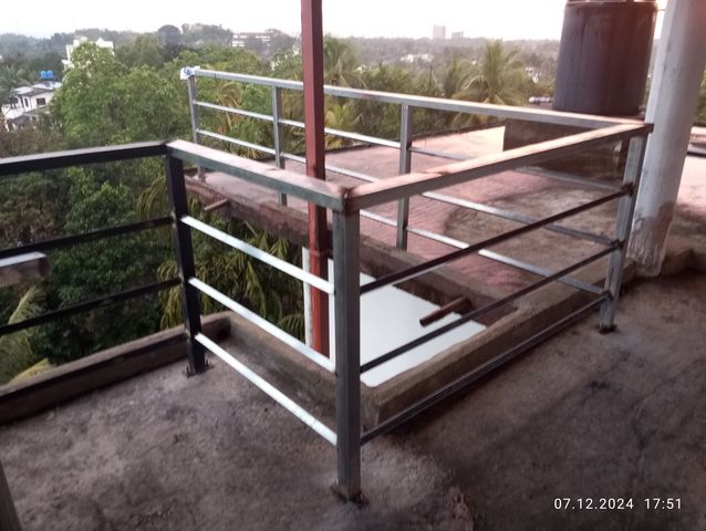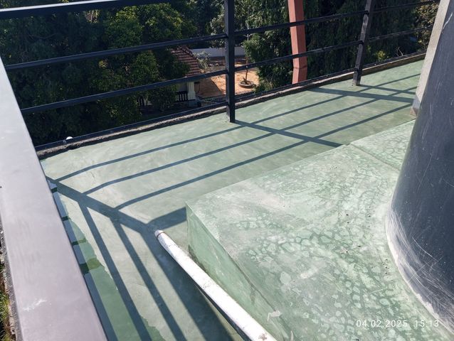 wir Material zum schweissen des Gelaenders auf die Dachterrasse