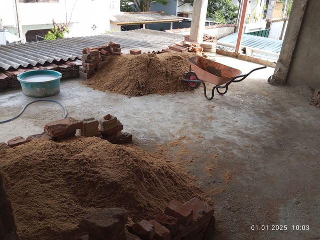 und rechts liegt gesiebter Sand, der sich zum Verputzen besser eignet. |