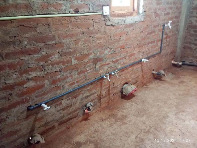faengt an die Wasserleitungen zu verlegen, die am Ende