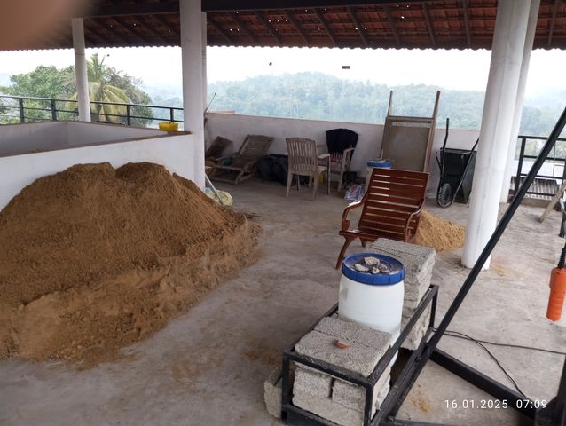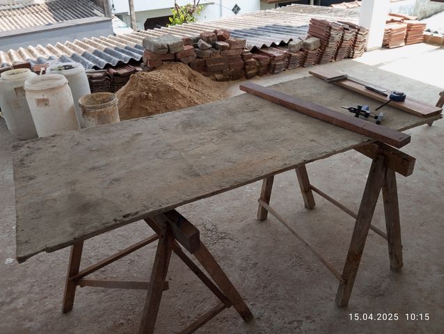 Arbeitsplatz, um Zement anzumischen. Da bietet sich die Terrasse an. |