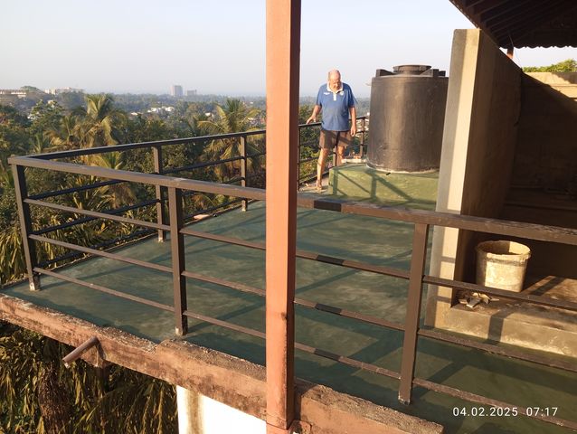 | Nach der vielen Arbeit sei uns auch mal eine Pause gegoennt. Auf der Dachterrasse... | ... gefaellt es uns immer besser. |