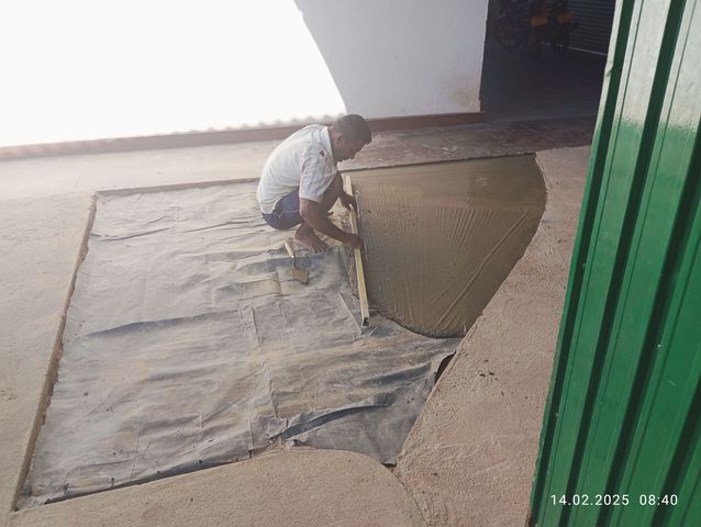 mixt der Meistro nach Geheimrezept den Zement an. |