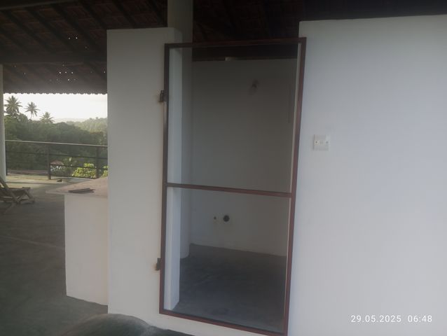 | Die Toilettentuer jetzt auch komplett, sogar mit Riegel. | Die Sonnenterrasse wurde mit Pflanzen bestueckt. |