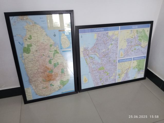 | Das sind die Landkarten fuer die wir in dem vorhin genannten Shop, Bilderrahmen haben... | ...anfertigen lassen. Rechts unten sieht man nun auch das Buecherregal.. |