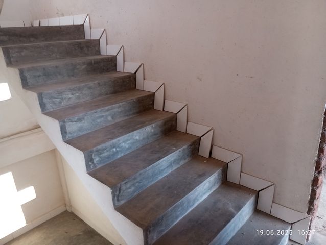 | So sieht das ganze dann totschick aus. Koennte auch bei Ikea stehen. | Auch die Treppenkanten wurden mit Gaerung gefliesst. |