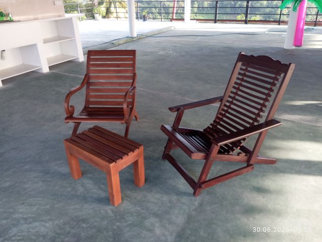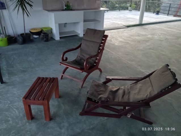 | Eine Sitzecke von Vielen. Wobei der rechte Stuhl mit Tischchen neu ist... | und der linke Stuhl schon 15 Jahre auf dem Puckel hat. |