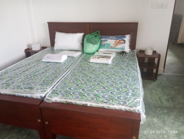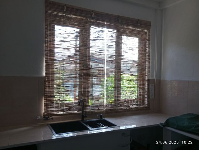| Zwei Bambusrollos fuer die Kueche... | ...und zwei Einzelbetten fuer das Schlafzimmer. Kann man auch auseinander stellen. |