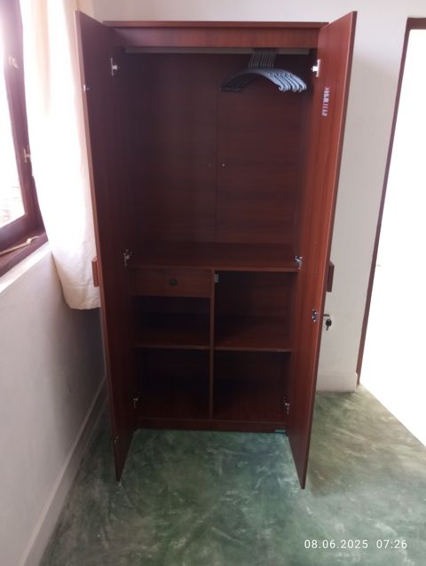| Schrank mit Buegeln, Faechern (nicht selbstverstaendlich) und Schloss. | Tolle Sache und sieht gut aus. Find ich zumindest. |