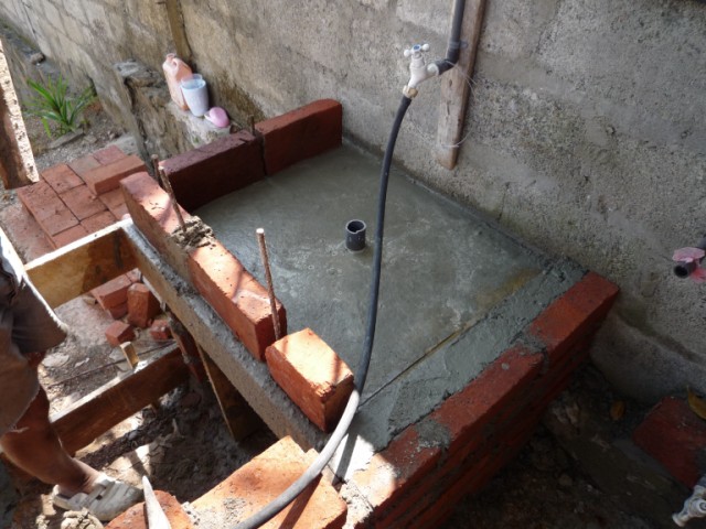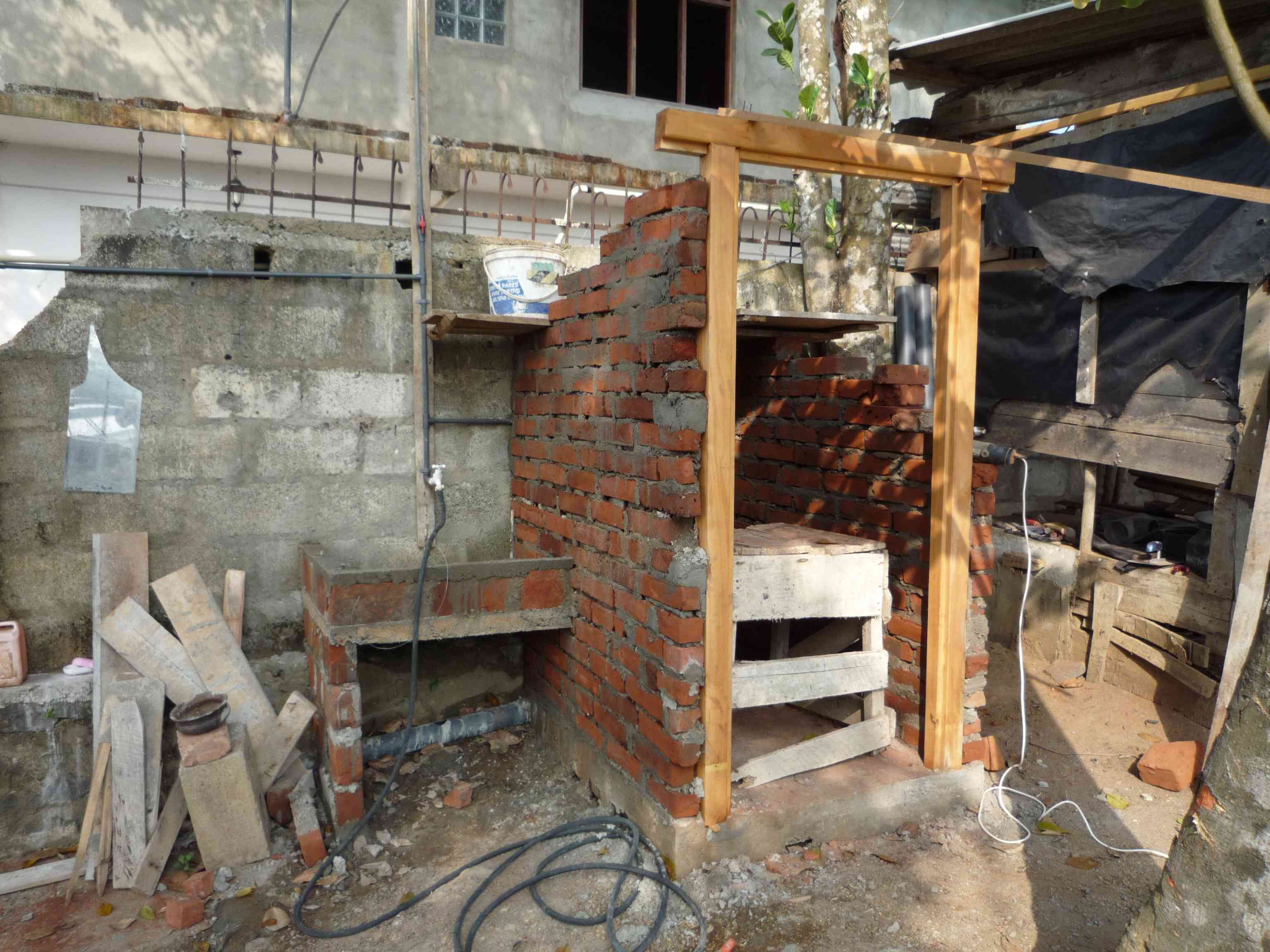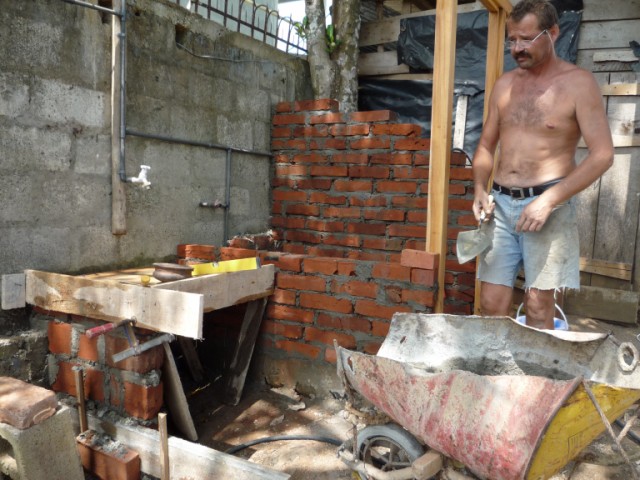 Lutz baut und baut und baut. Hier entsteht das "Badezimmer" für die Arbeiter.