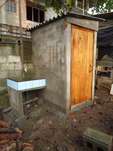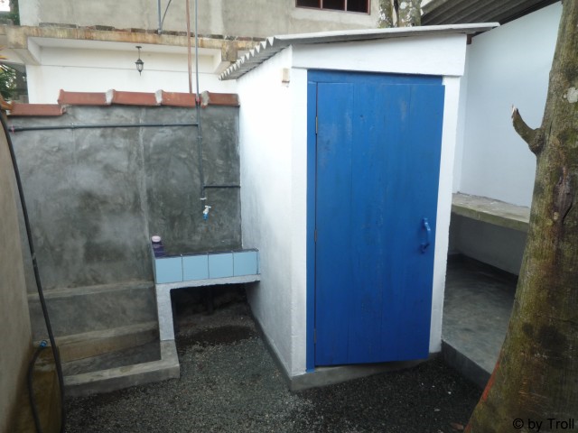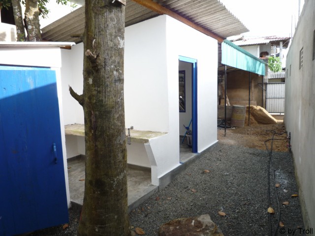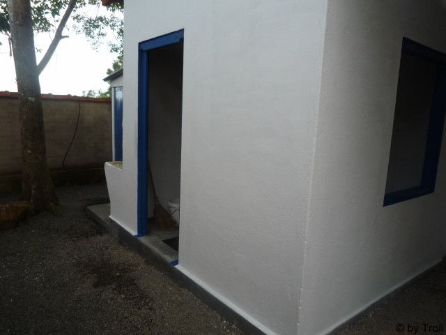 und fertig ist das neue Häuschen für das Personal. Fenster+Türen kommen noch. Inzwischen dient es als Abstellraum.