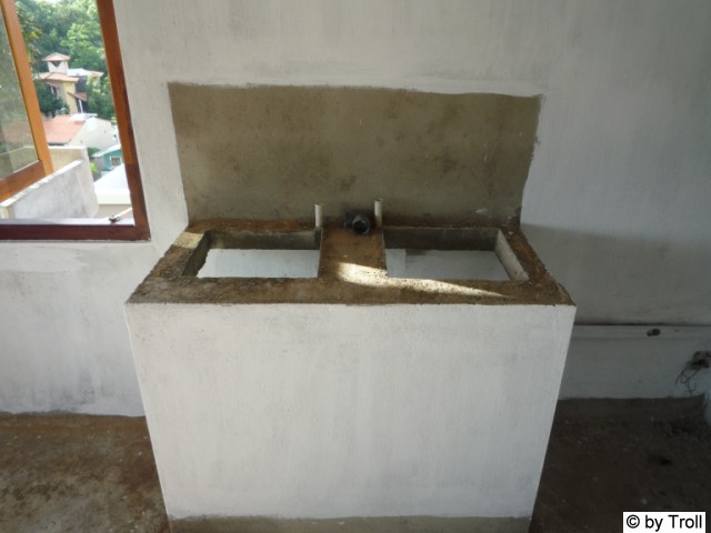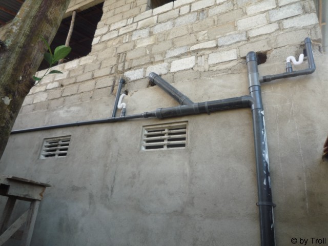 In SL kommen die Rohre einfach draußen dran. Abflüsse, Wasserzulauf und auch ... |