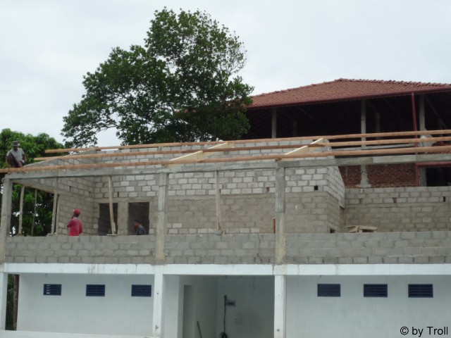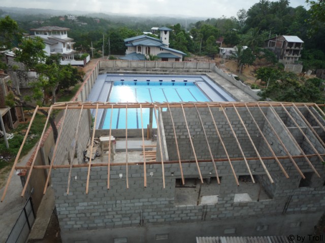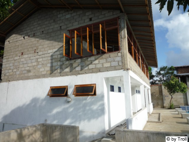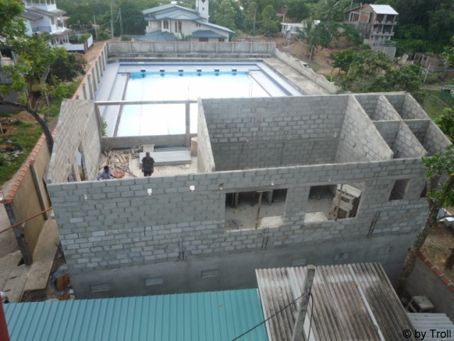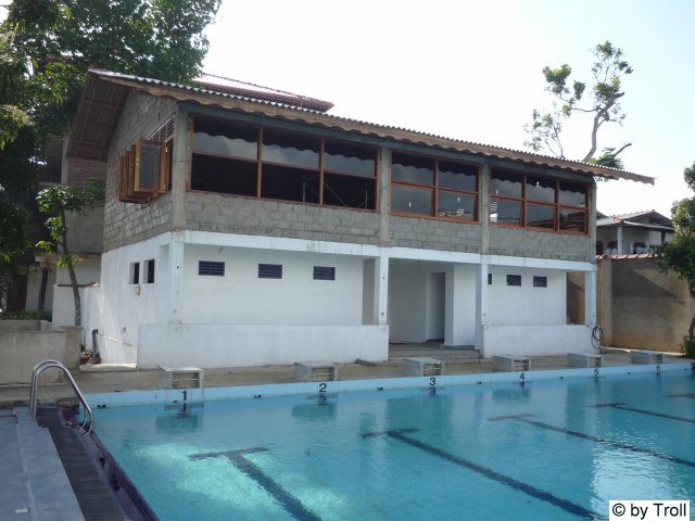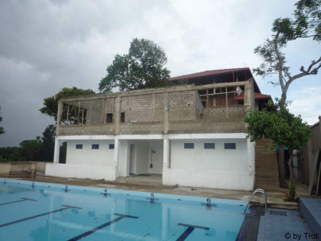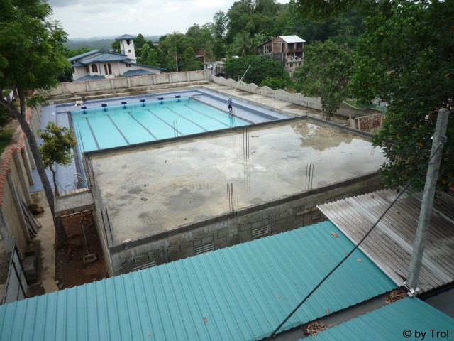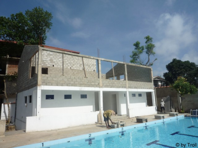 So mal ehrlich, ein Schwimmbad ohne Verzehrmöglichkeit ist irgendwie doof. So haben wir uns entschlossen, auf die Garderoben noch eine Cafeteria zu bauen. Die kann man später auch für Feierlichkeiten mieten.