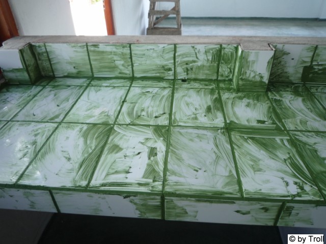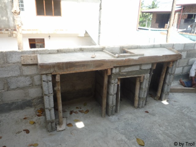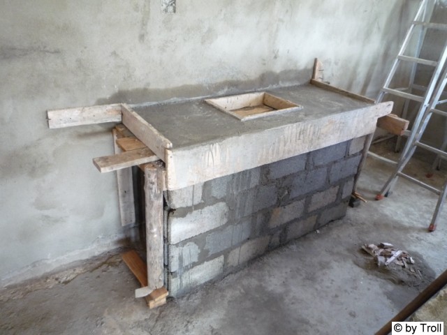 Der Tresen schon auf Arbeitshöhe aber noch nicht fertig. |