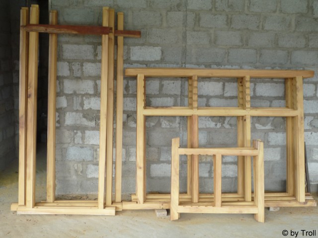 Fensterrahmen und Türen sind nun drinnen und eingeputzt. |