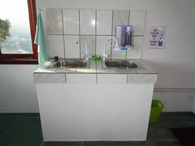 Das Handwaschbecken mit der Möglichkeit filtriertes Wasser zu zapfen.