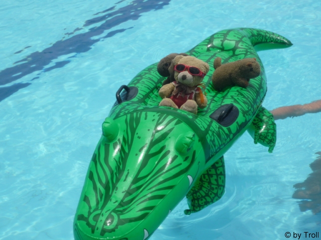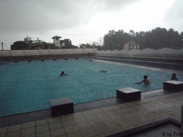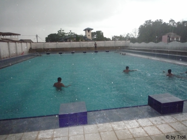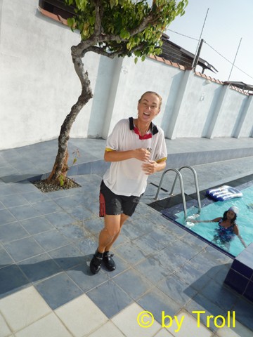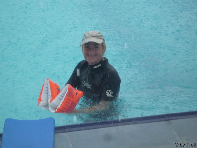 ... und einer steht im Pool bei Regen und hat trotzdem gute Laune...