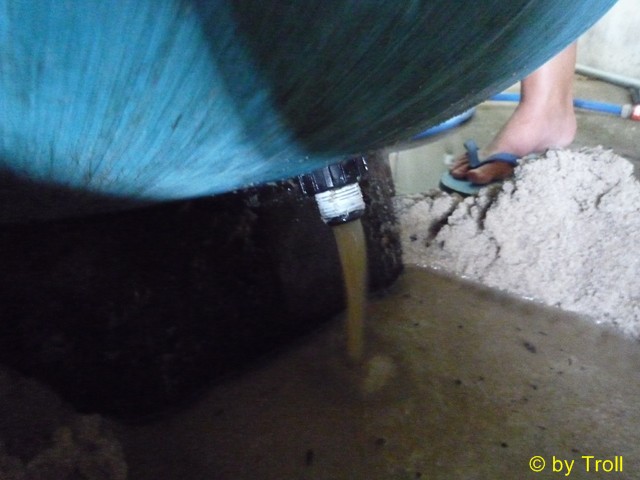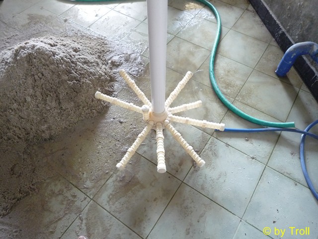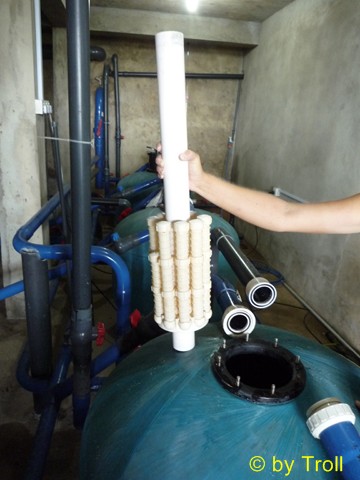 ... so durch die Öffnung. Das Wasser wird im Sand gefiltert, fliesst durch diese...