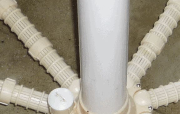 ... schmalen Ritzen, durch das Steigrohr in den Pool zurück.