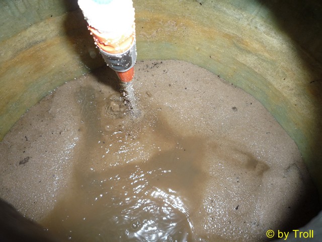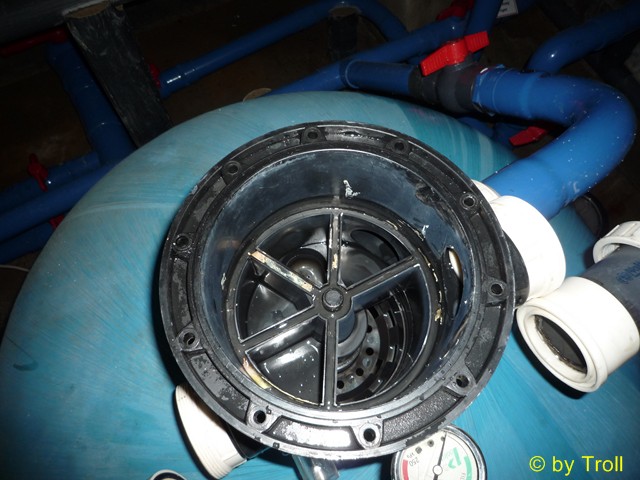 So sieht dann ein fast leerer Sandfilter aus. Restsand wird im Gehäuse gewaschen.