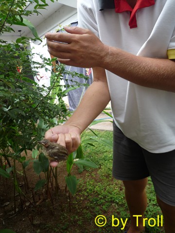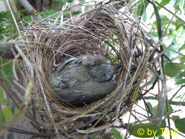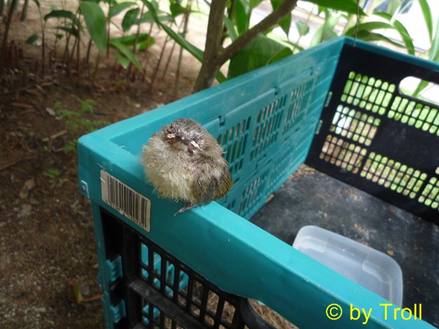 Es konnte einem Leid tun. Immer wieder flog es auf den Boden und wurde dann von den Ameisen attackiert. Die Eltern stubsten,machten und taten um das junge Ding zum Fliegen zu animieren. Nichts half. Irgendwann ist es dann auch gestorben. Thats Life!
