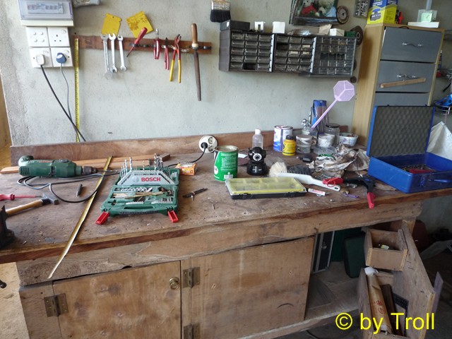 Unsere Werkbank. Immer wieder im Einsatz. Die hat sich bewährt.
