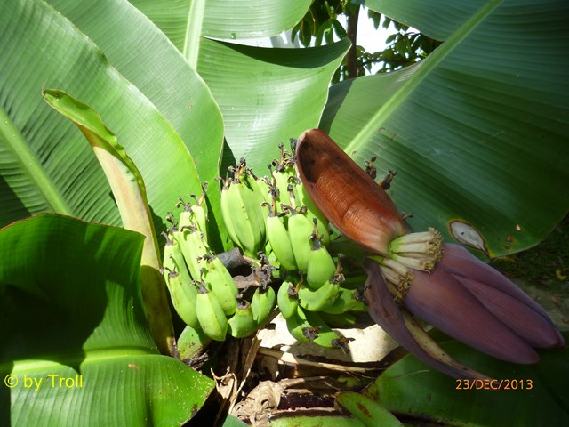 Unsere ersten Bananen sind am Wachsen. Da die Bäume jetzt gefällt sind, kommt an |