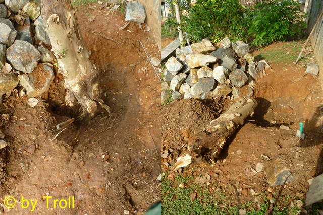 Schwerstarbeit. Wurzel ausgraben und das bei dem Boden. |