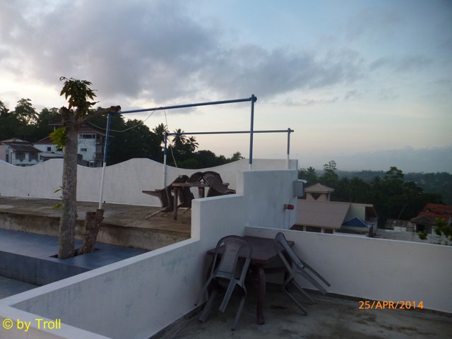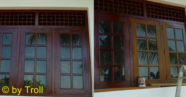 Da die Fenster immer offen stehen brauchten wir einen Regenschutz, was nun aber auch ein Sonnenschutz ist. Die Sonne macht alles kaputt. |